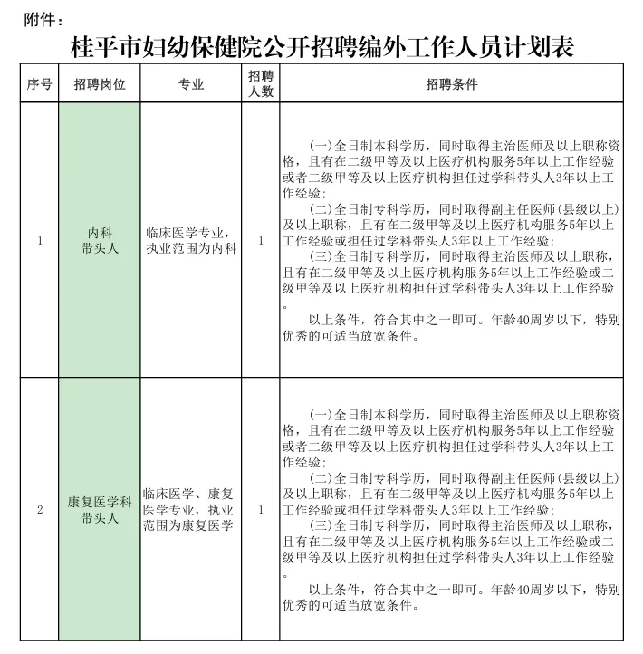 詳見(jiàn)《桂平市婦幼保健院公開(kāi)招聘編外工作人員計劃表》(附件)
