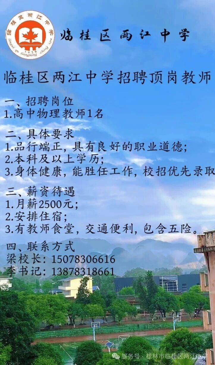 2025年桂林臨桂區兩江中學(xué)招聘頂崗老師1人