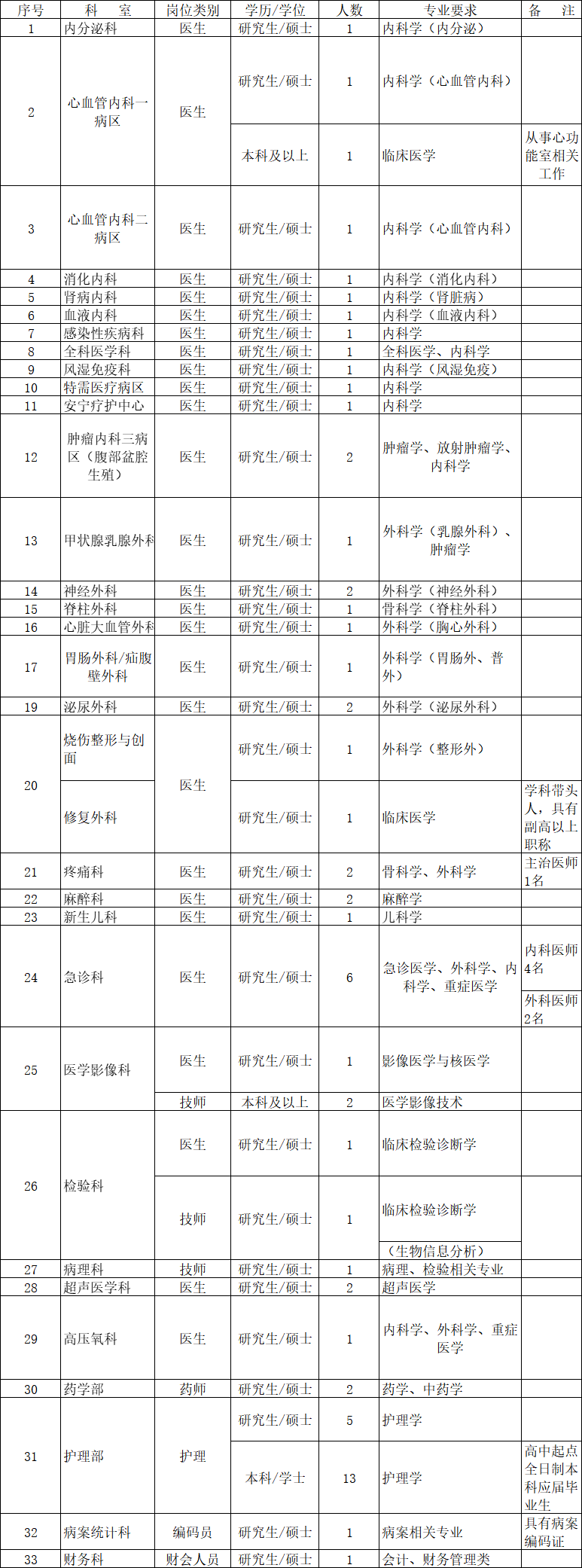 醫院長(cháng)期招聘各臨床醫技科室博士等高層次人才,人數不限。