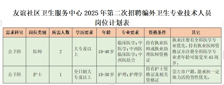 附件1 友誼社區衛生服務(wù)中心2025年第二次招聘編外衛生專(zhuān)業(yè)技術(shù)人員崗位計劃表.docx
